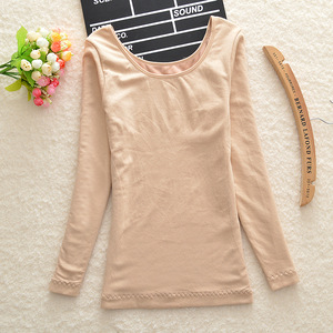 大U领保暖内衣超低领上衣修身打底加绒加厚单件内衣全身加绒款