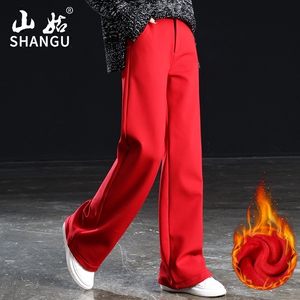山姑红色高腰阔腿裤子女秋冬加绒加厚长裤2017新款大码宽松休闲裤