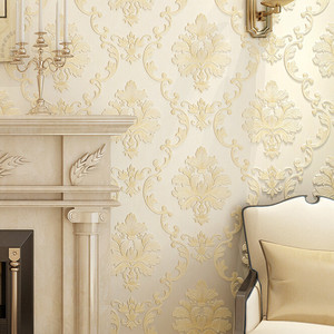 欧式无纺布壁纸3D立体浮雕精压大马士革客厅卧室背景墙纸高档奢华