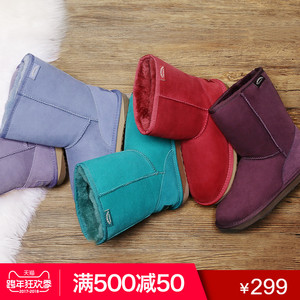 JUMBOUGG冬季简帛澳洲羊皮毛一体中筒雪地靴女5025U