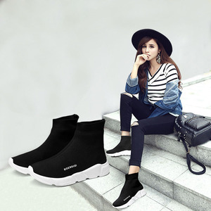 波尔谛奇2017新款韩版百搭休闲弹力袜子鞋女平底高帮加绒运动鞋潮