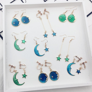 韩国气质吊坠耳饰925银个性星星月亮耳钉ins耳环少女耳夹无耳洞
