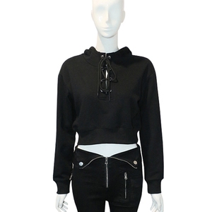 孙娜恩明星同款上衣服宽松加绒加厚款绑带连帽露肚脐装短款卫衣女