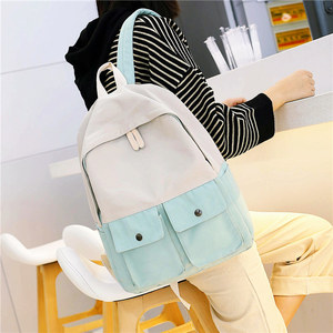 日系双肩包女潮校园简约牛津布背包原宿百搭森系韩版高中学生书包