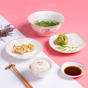 雅诚德小清新日式碗碟套装家用粉色碗盘子组合陶瓷餐具碗盘礼盒