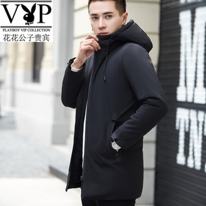 花花公子贵宾棉衣男厚外套中长款羽绒棉服连帽韩版学生冬季男装潮