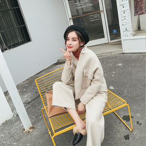2017秋冬新款加厚毛呢外套中长款宽松韩版双排扣茧型呢子大衣女
