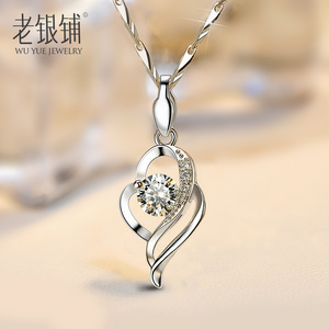镶施华洛世奇锆S999银饰品项链女锁骨链吊坠生日礼物送女友刻字