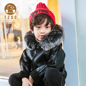 童真神采秋冬皮衣加绒加厚皮衣男潮流时尚百搭保暖连帽男童皮外套