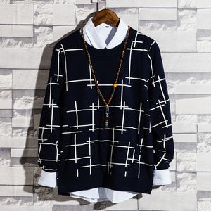 韩版个性条纹男士毛衣修身圆领秋冬季青年潮流针织衫男长袖线衣潮