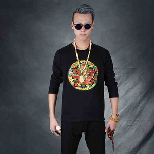 中国风男装盘扣复古刺绣龙补子龙袍中式唐装古风修身国风T恤男潮