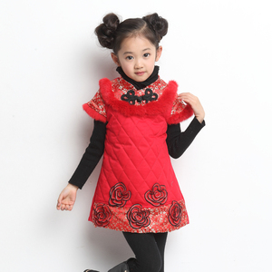 2016儿童旗袍民族风中大童夹棉女童唐装旗袍裙演出服冬装过年衣服