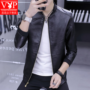 花花公子贵宾皮衣男复古飞虎队PU空军飞行服短版皮夹克男士外套潮