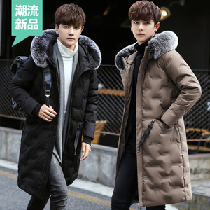 男士中长款刺绣羽绒服修身连帽加厚保暖外套青年韩版狐狸毛领大衣
