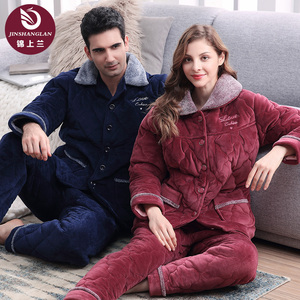 冬天爸妈中老年人情侣家居服男法兰绒棉袄加厚加绒保暖纯色睡衣女