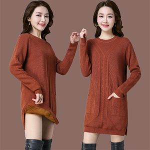 秋冬加绒加厚毛衣女中长款韩版新款圆领羊毛衫大码宽松羊绒打底衫