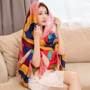 丝巾女秋冬季百搭围巾沙滩长巾棉麻纱巾民族风防晒披肩春夏季新款