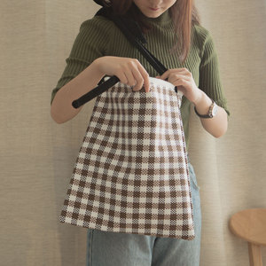 17冬上新日韩文艺格子布包仿兔毛双面包女chic丝绒肩带单肩包女