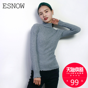 毛衣女套头秋冬新款韩版荷叶领弹力修身打底衫女长袖保暖针织衫女