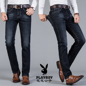 花花公子牛仔裤男冬季弹力直筒正品青年男士蓝黑色商务休闲长裤