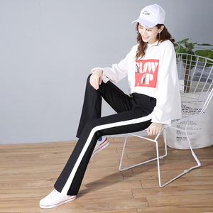 侧边条纹微喇叭裤女2017新款宽松裤子女秋显瘦高腰运动休闲裤长裤