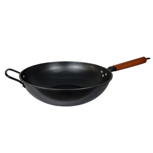 纯铁老式炒锅家用34cm平底圆底加厚无涂层熟铁锅燃气灶电磁炉适用