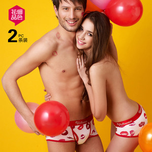 2条装情侣内裤男士内裤男平角裤纯色棉质低腰三角内裤女士大码