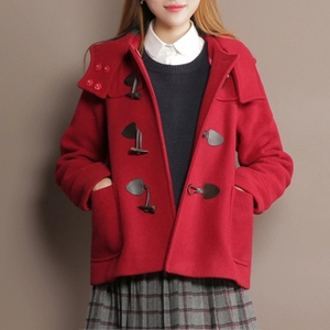 木桐榆叶/时光与你/文艺复古牛角扣毛呢外套短款学院风显瘦外套女