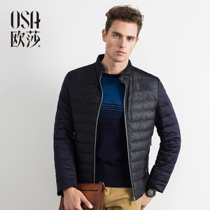 OSA欧莎男装2017秋冬新款立领拼接印花轻薄羽绒服男士保暖外套