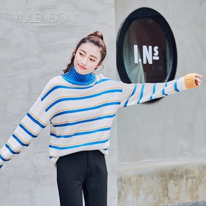 2017秋装新款女装长袖高领毛衣宽松蝙蝠毛衫大码条纹线衫针织衫