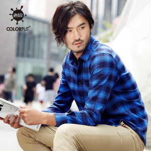 2017新款秋冬纯棉法兰绒格子长袖男士衬衫磨毛修身休闲商务衬衣