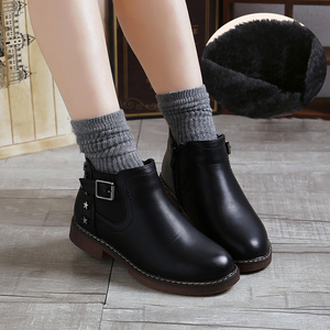 维妆2017秋冬新款真皮高跟短靴女粗跟系带马丁靴防水台尖头靴子